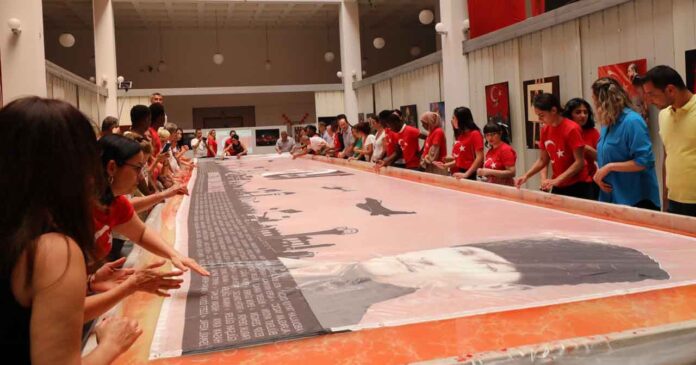 15 metre uzunluğunda olan ebru çalışmasının üzerinde Mustafa Kemal Atatürk ve Cumhurbaşkanı Recep Tayyip Erdoğan’ın fotoğrafları yer alırken 15 Temmuz günü şehit olan Piyade Astsubay Kıdemli Başçavuş Ömer Halisdemir’in de görseli yer aldı. Afişte 251 şehidin isimlerine de yer verildi.