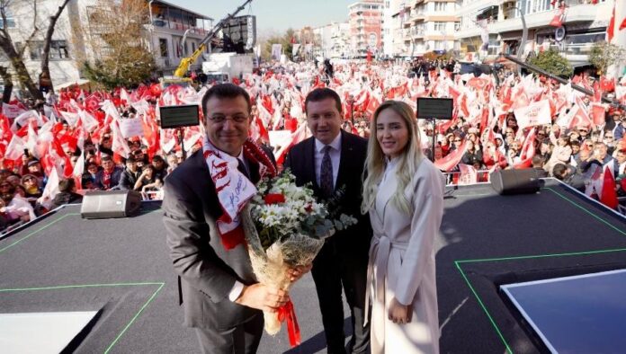 Silivri’yi başka bir siyasi anlayışın yönettiğini hatırlatan İmamoğlu, “Burayı, başka partili değil görmezden gelmedik. Burada bazı konularda bizi yok saysalar da arkamızdan kötü konuşsalar da ekranda siyaset yapsalar da biz, Silivri halkına hizmet etmekte en önde koştuk. 39 ilçede aynısını koştuk. İstanbul’da çok çalıştık. İcraatçı, halkçı belediyeciliği size yaşatmak istedik. Şimdi o icraatçı, halkçı, cumhuriyetçi, vatandaşını seven, insanını seven, siyasi talimat geldiğinde ‘pıt’ deyip susan değil, vatandaşının hakkını arayan, hukukunu koruyan bir Belediye Başkanı İstanbul’da. Ekrem İmamoğlu İstanbul’da, Bora Balcıoğlu Silivri’de belediye başkanı olacak. Biz, kim hangi partiden, hangi görüşten, hangi inançtan; dönüp bakmadık, bakmayız. Böyle bir şeyi aklımızın ucuna getirmeyiz. Canla, başla çalışırız. O sayede biz, Silivri’ye 5 yılda, yıllardır görmediği hizmeti sunduk. Bunlar, her yolu kendine mubah görsünler; biz çalışmaya devam edeceğiz” şeklinde konuştu.