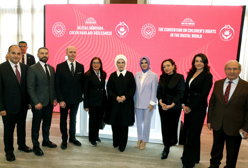 Türkiye’nin çocukların dijital ortamda korunması için önemli adımlar attığını belirten Emine Erdoğan, Aile ve Sosyal Hizmetler Bakanlığı tarafından hazırlanan “Dijital Dünyada Çocukların Güçlendirilmesine Yönelik Eylem Planı” ve “Dijital Dünyada Çocuk Hakları Sözleşmesi” gibi stratejik belgelerin önemine değindi. Ayrıca, 15 yaş altı çocuklara yönelik sosyal medya düzenlemesi içeren yasa teklifinin Türkiye Büyük Millet Meclisi’ne sunulduğunu aktardı. Erdoğan, dijital dünyanın çocuklar için daha güvenli hale getirilmesinin yalnızca ailelerin değil, kamu kurumları, teknoloji şirketleri ve uluslararası kuruluşların da ortak sorumluluğu olduğunu vurguladı.