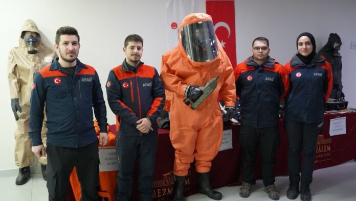 Kuş gribinden COVİD-19’a, Hiroşima’dan Halepçe Katliamına kadar afetler, alanında duayen isimler tarafından konuşuldu. Sağlık alanında önemli görevler üstlenen hemşirelere ve KBRN alanına ilgi duyanlara yönelik düzenlenen sempozyuma AFAD ve Kızılay Ekipleri de katıldı. Afet durumlarını simüle etmek adına Kızılay çorba dağıtırken, hemşirelik bölümü öğrencileri de KBRN koruyucu ekipmanlarını giyerek afet durumunda nasıl davranacaklarını deneyimlediler.