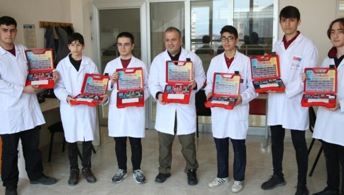 Öğrenciler, geçen yıl “KOD-AT” adıyla Türk Patent ve Marka Kurumunca tescil belgesi verilen eğitim setinin seri üretimini yapıyor.